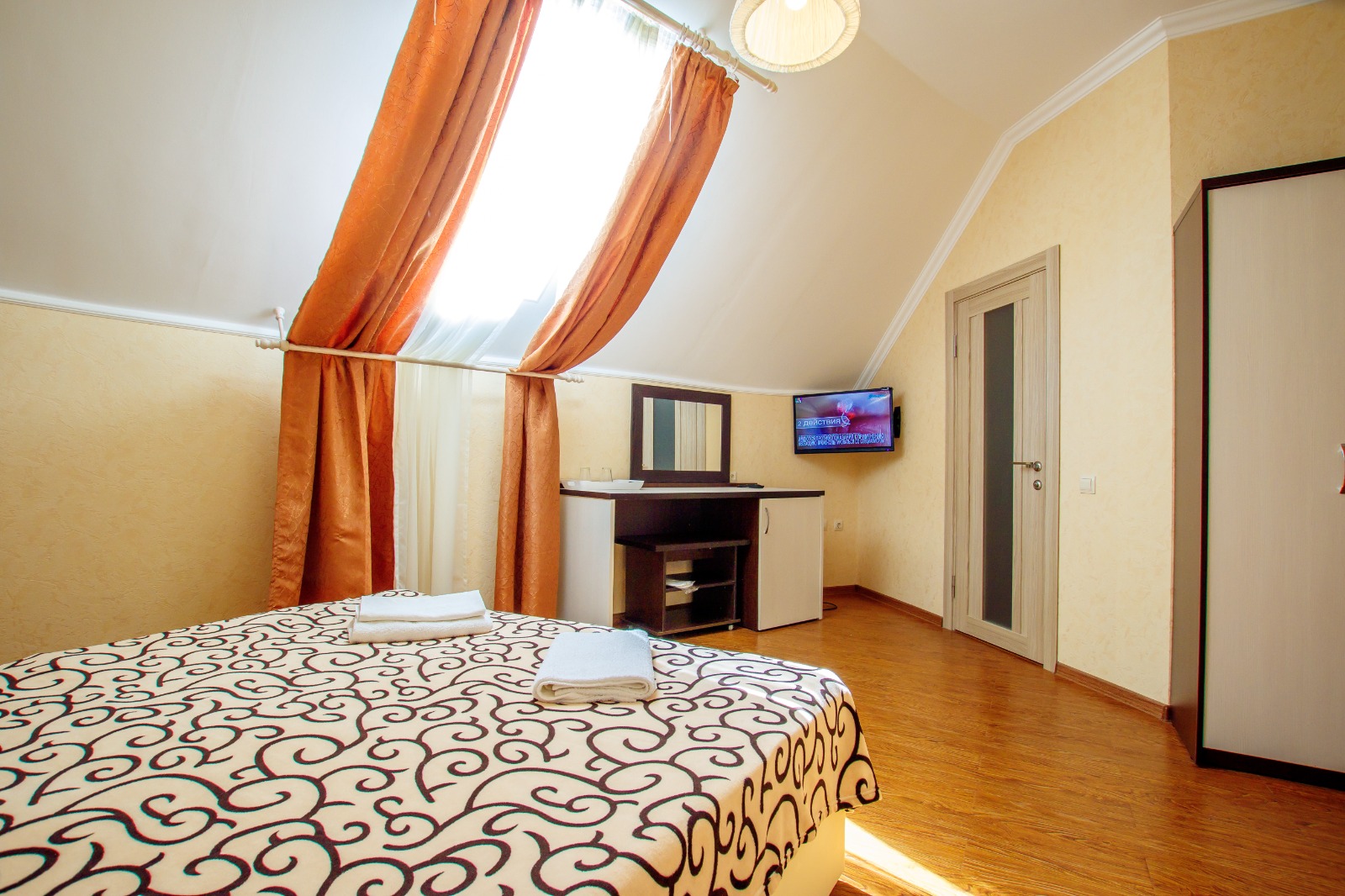 - Современные оборудованные номера: кондиционер, холодильник, телевизор, душ, c/у, электрический чайник;